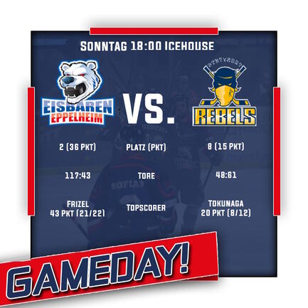 Am Sonntag haben die Eisbären die Chance, die Tabellenführung von den Fire Wings zurück zu erobern. Wärend diese spielfrei sind, empfangen die Eisbären die aufstrebenden 1b-Rebels im heimischen Icehouse, die mit 3 Siegen in Serie mit breiter Brust nach Eppelheim reisen werden.